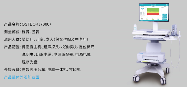 OSTEOKJ7000+超聲骨密度儀是南京科進實業有限公司推出的一款高性價比、覆蓋全年齡段、適用于橈骨/脛骨骨質檢測的產品,用于測量人體骨質狀況。OSTEOKJ7000+適用于各類醫療與體檢機構,不論對中老年人骨質疏松癥還是青少年兒童骨骼發育狀況,都能提供詳細的臨床參考數據。